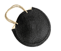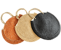 Cartera Playera redonda, con cierre y forro interior en fibra natural.